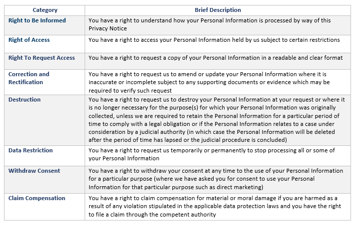KSA residents, under Saudi Arabia’s Personal Data Protection Law (PDPL), have the following core data subject rights: