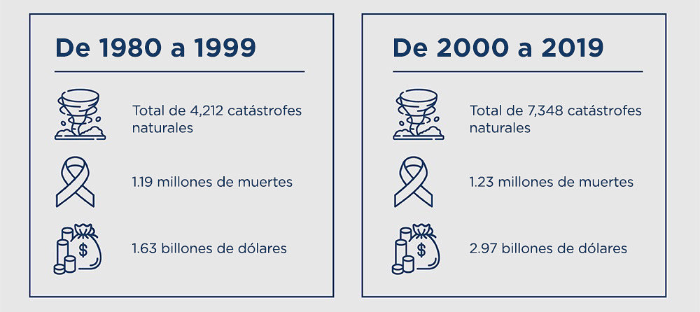 (Fuente: Informe UNDRR: El costo humano de los desastres: una mirada a los últimos 20 años (2000-2019) / Base de datos de situaciones de emergencia (EM-DAT) del Centro de Investigaciones sobre la Epidemiología de los Desastres (CRED))