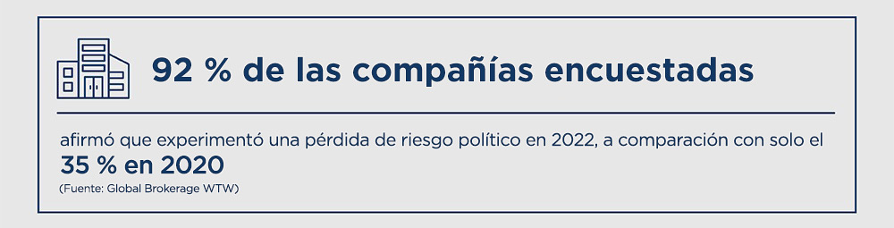 Es probable que aumente la demanda de pólizas que cubran la expropiación —incluida la expropiación progresiva, como el aumento de las tasas impositivas—, así como la frustración de contratos, la guerra y el riesgo de violencia.