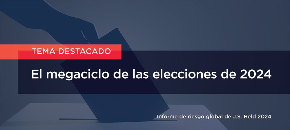 El cambio conlleva riesgos y oportunidades. En el primer Informe de Riesgo Global de J.S. Held, combinamos la experiencia técnica, científica, financiera y estratégica de los miembros de nuestro equipo para brindar información sobre temas influyentes de 2024, incluyendo las implicaciones de las elecciones mundiales, la incertidumbre económica de China, los riesgos y ventajas de la inteligencia artificial, el clima y los desastres naturales, las políticas ambientales, sociales y de gobernanza y la sostenibilidad, y el riesgo político de la intervención gubernamental.