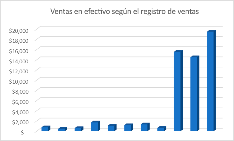 Una vez recibido el encargo, el contador forense analizó las ventas en efectivo, con cheques y con tarjeta de crédito de los meses de febrero a diciembre de 2021, como se muestra en el siguiente cuadro: