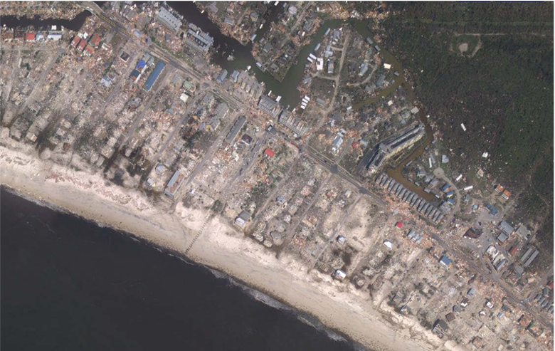 Figura 8: imágenes aéreas de Mexico Beach, Florida, después del huracán Michael en 2018 (Fuente: Informe de ciclones tropicales del NHC sobre el huracán Michael).