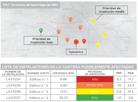 Debido a que la respuesta rápida es esencial, aprovechamos el sistema ShakeCast del Servicio Geológico de Estados Unidos (USGS) para proporcionar a las partes interesadas un servicio de informes de prioridad de inspección sísmica automatizados y en tiempo real, lo que les permite tomar decisiones rápidas e informadas tras un evento sísmico.